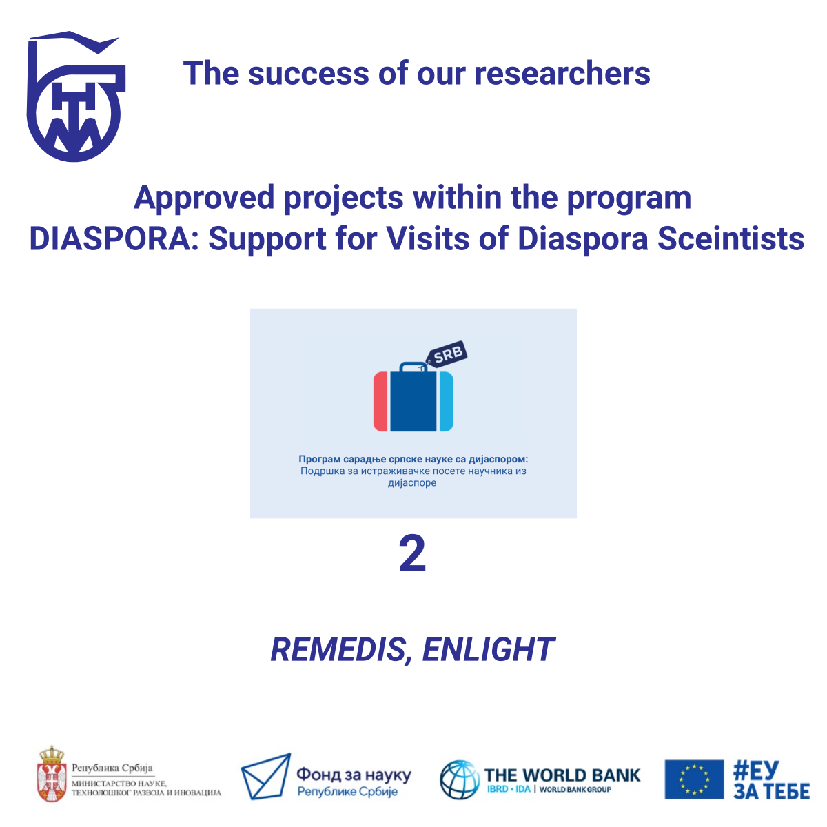 We are pleased to inform you that the final list of projects approved for funding under the Serbian Scientific Cooperation Program with the Diaspora: Support for Visits of Diaspora Scientists, Science Fund of the Republic of Serbia, includes two projects led by our Institute.