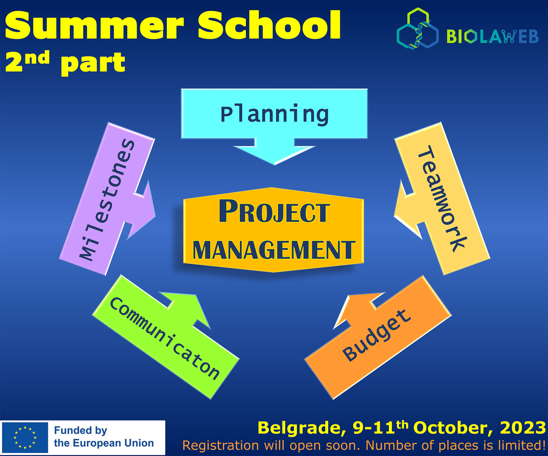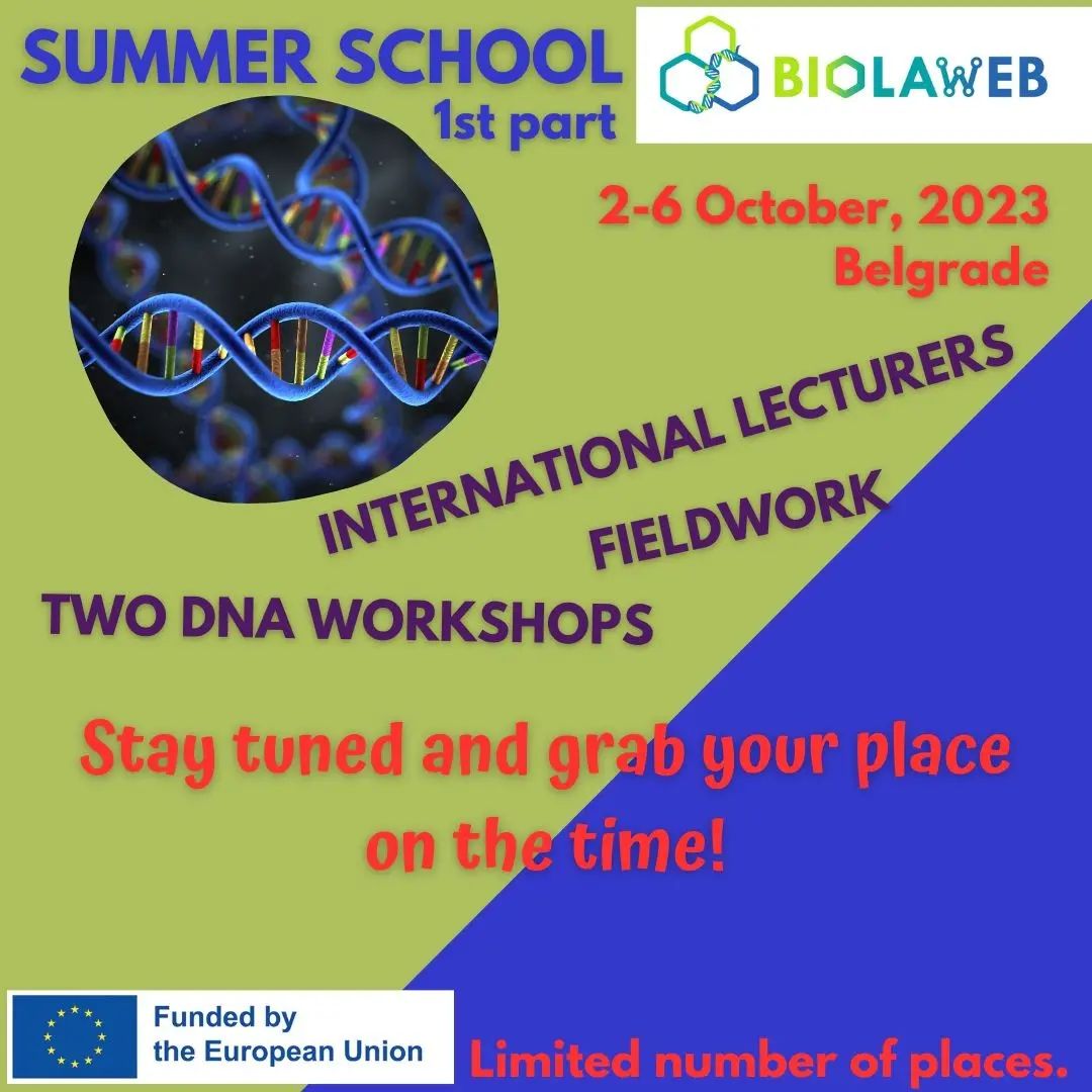 Najava za letnju školu u organizaciji BIOLAWEB projekta, od 02-13. oktobra 2023. godine