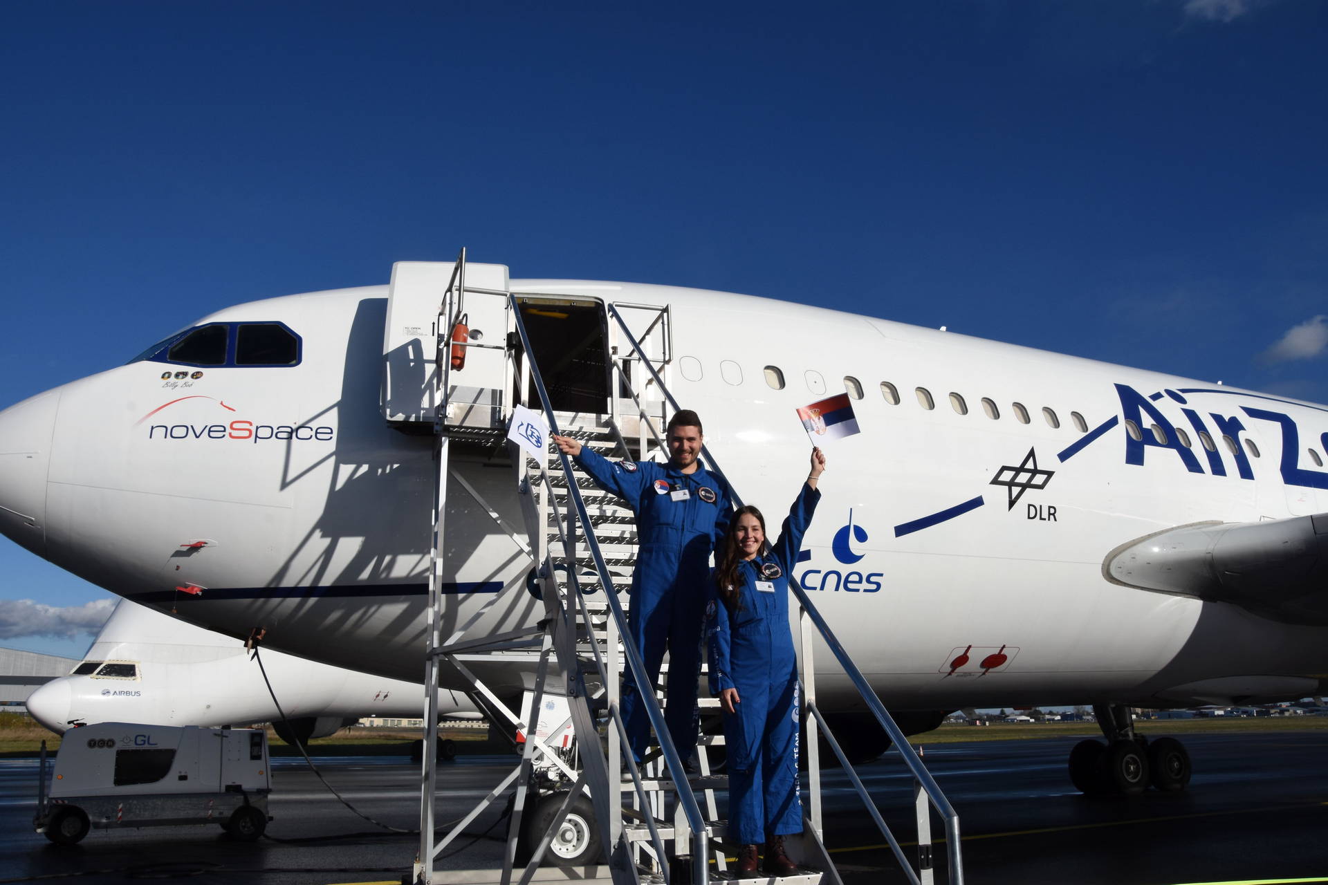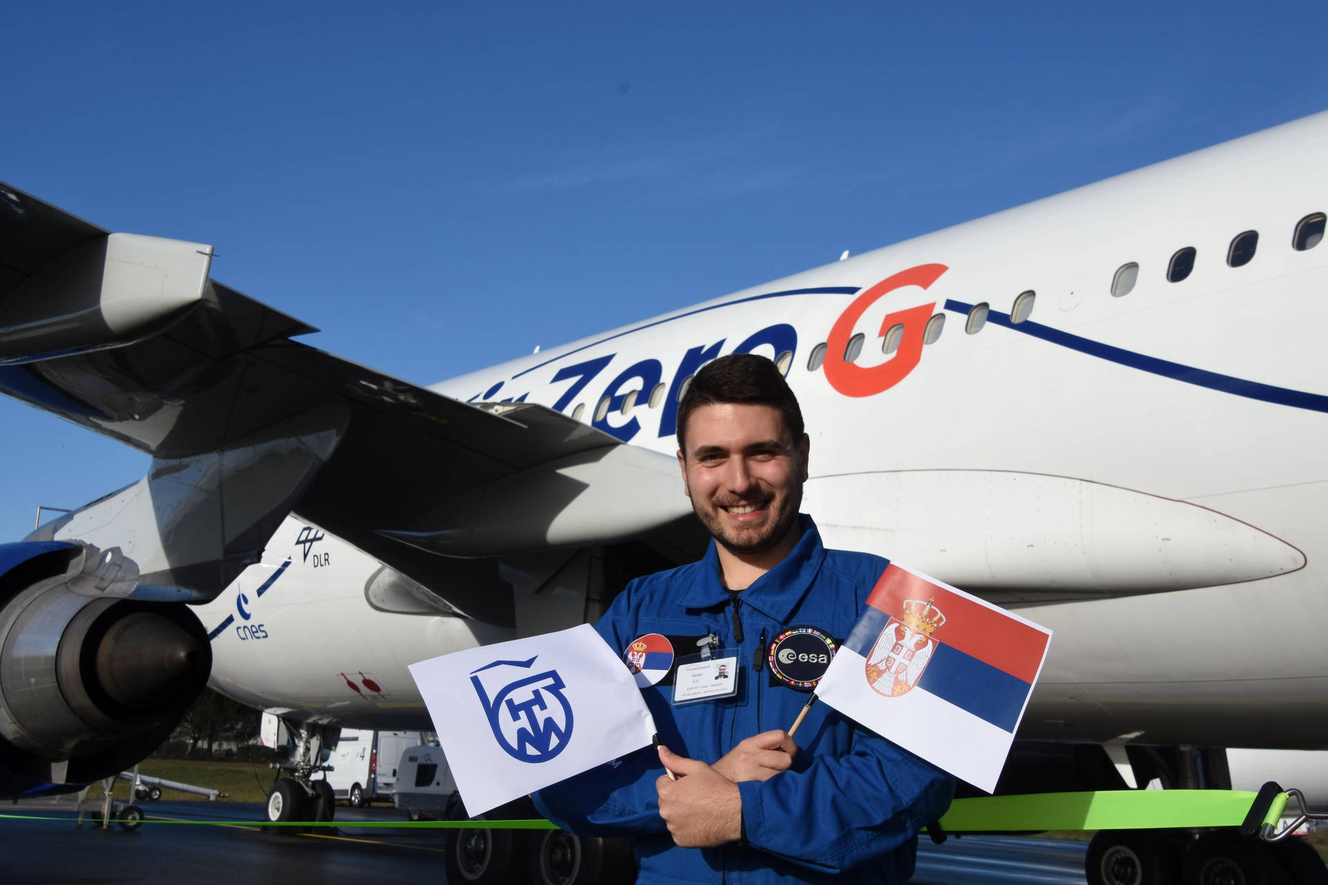 Doktoranti Teodora Vićentić i Stefan Ilić učestvovali su u pripremi i realizaciji eksperimenta za parabolični let Evropske svemirske agencije (ESA). Kao vrhunac njihovog truda i saradnje sa grupom našeg prijatelja Carlo Iorio-a iz Brisela, prošle nedelje su imali prilike da upravljaju eksperimentom u bestežinskom stanju na posebnom letu ZEROG koji je organizovan u saradnji sa Novespace agencijom u blizini Bordoa. Po našim saznanjima, ovo je prva grupа iz naše zemlje koja je učestvovala u ovakvim eksperimentima.