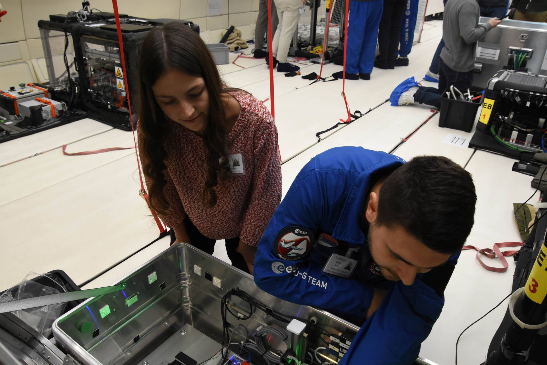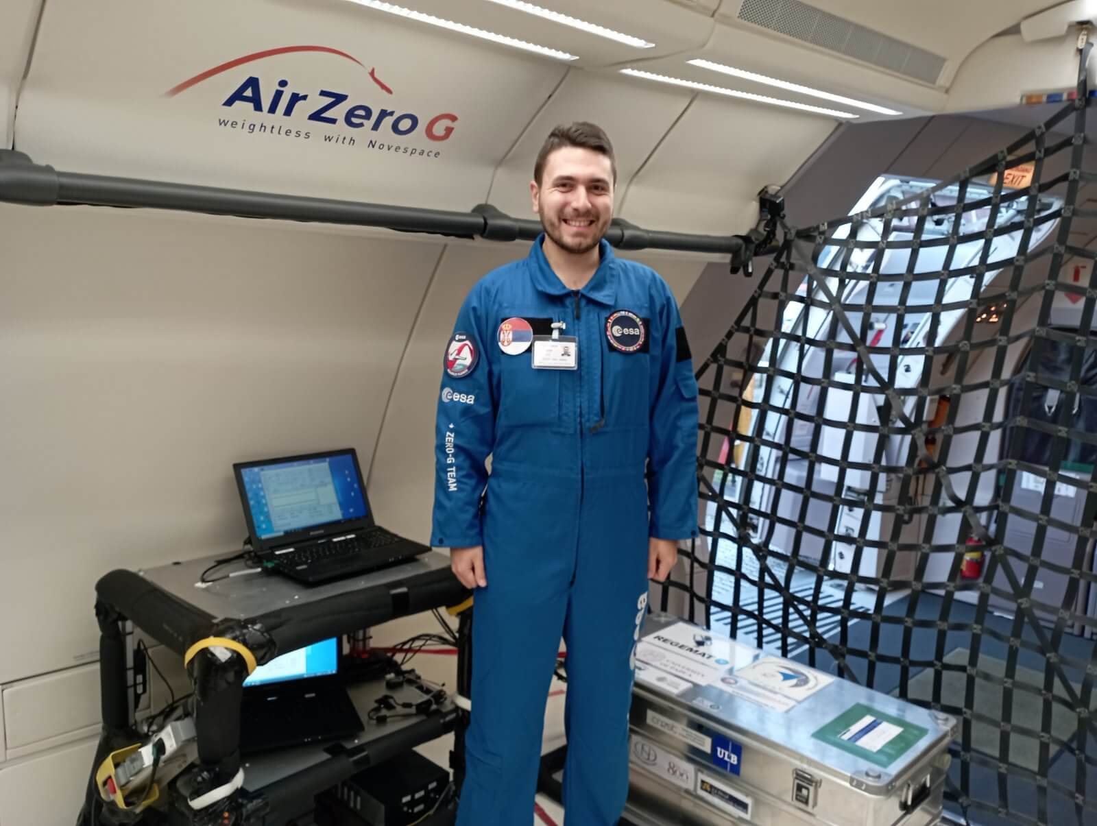 Doktoranti Teodora Vićentić i Stefan Ilić učestvovali su u pripremi i realizaciji eksperimenta za parabolični let Evropske svemirske agencije (ESA). Kao vrhunac njihovog truda i saradnje sa grupom našeg prijatelja Carlo Iorio-a iz Brisela, prošle nedelje su imali prilike da upravljaju eksperimentom u bestežinskom stanju na posebnom letu ZEROG koji je organizovan u saradnji sa Novespace agencijom u blizini Bordoa. Po našim saznanjima, ovo je prva grupа iz naše zemlje koja je učestvovala u ovakvim eksperimentima.